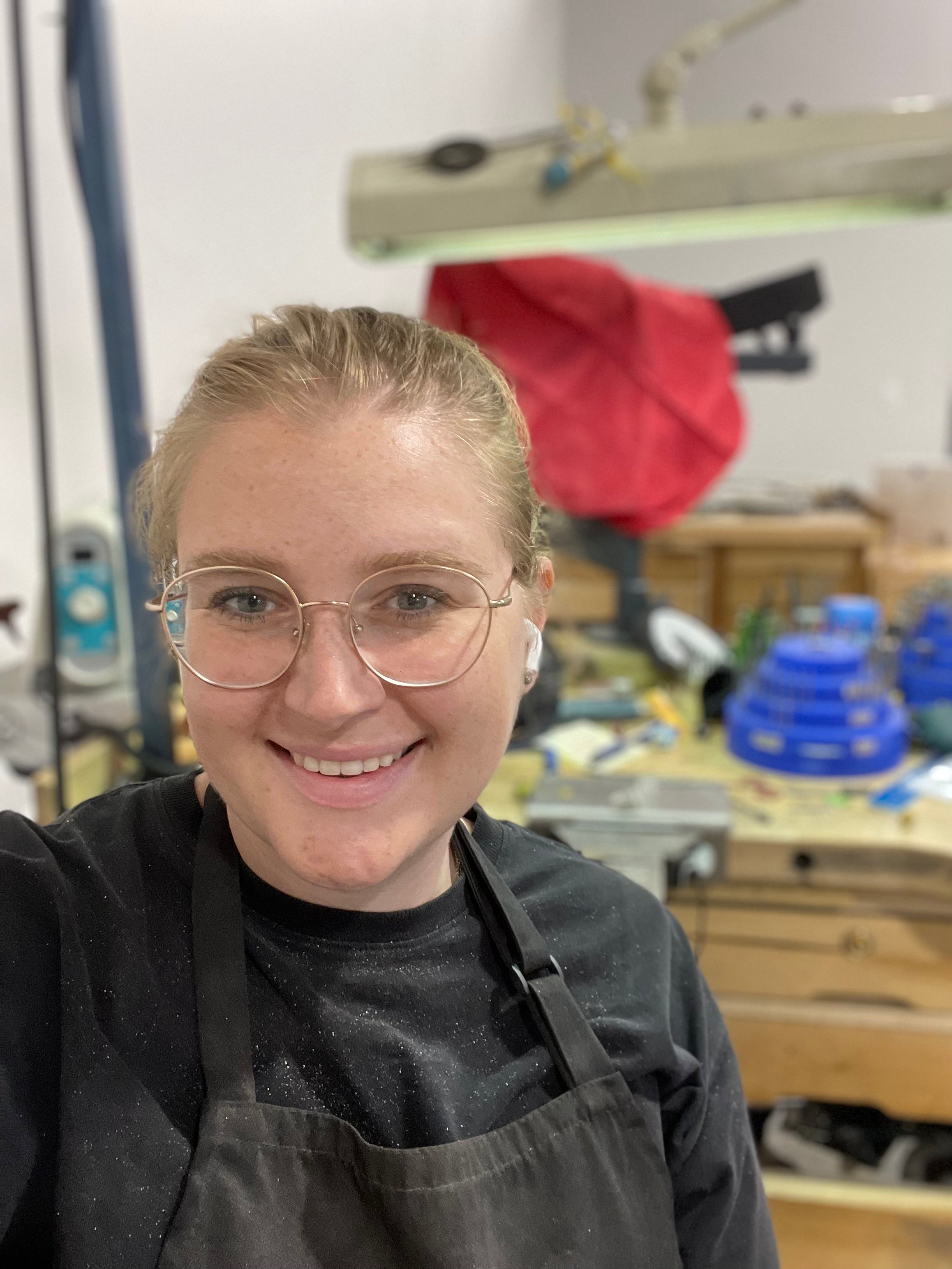 Haley Vogt’s work is centered on the exploration of classical modernism and a kinetic playfulness that speaks to her lifelong hankering to fidget. She weaves this together with a strong creative process and craftsmanship to create unique pieces of wearable art. The integrity in her creative process is reflective of her formal education from the CCS, New Approach School for Jewelers and teaching metalworking workshops in Hangzhou, China. Haley’s high quality of work has been fostered from her professional experiences as a jeweler in each avenue of the industry from MHG Jewelry Studio, Signet and AU Enterprises.