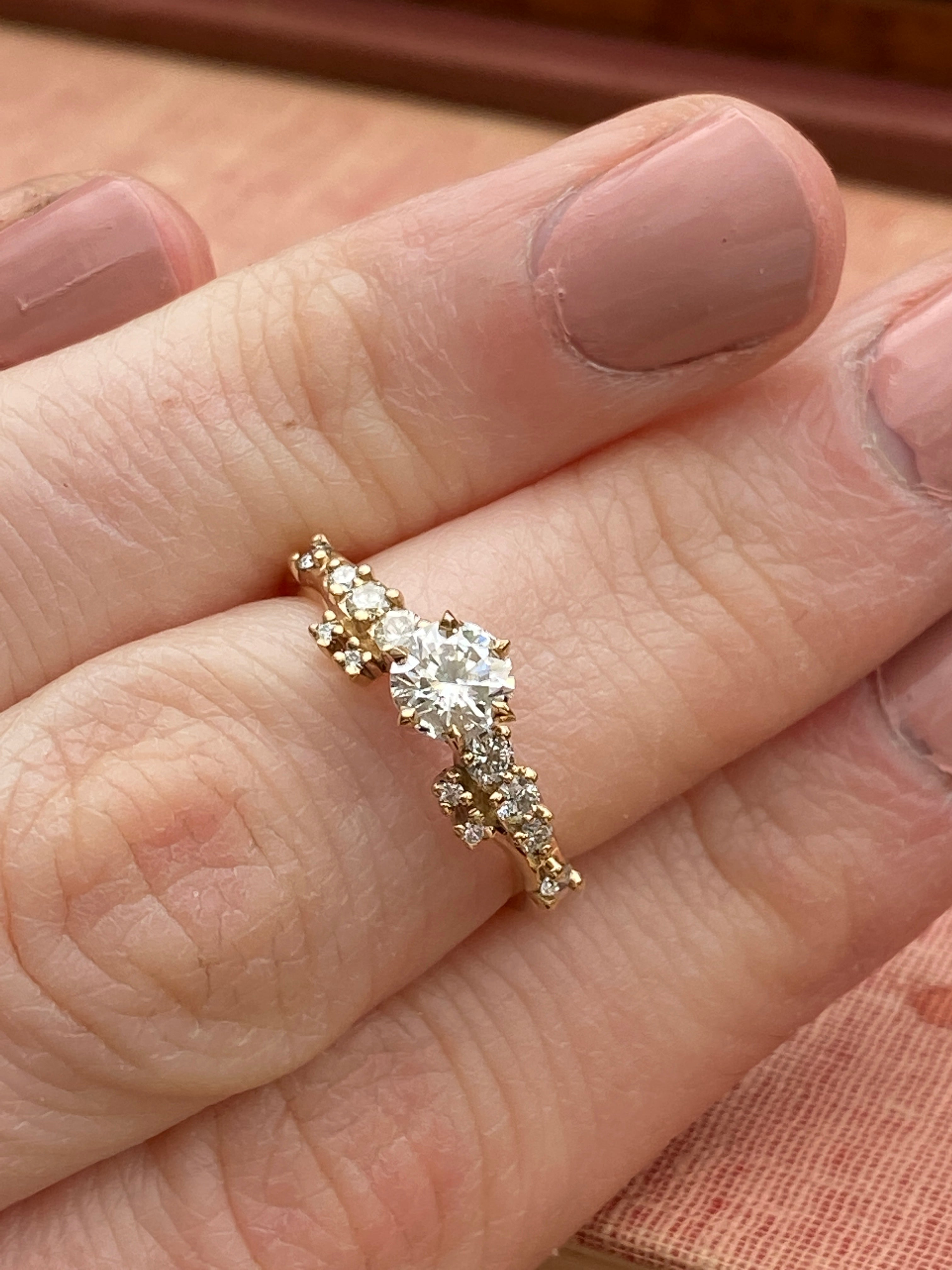 For bespoke work, I love using sustainable and ethically sourced lab grown diamonds and reusing as much as possible from old jewelry you may have!